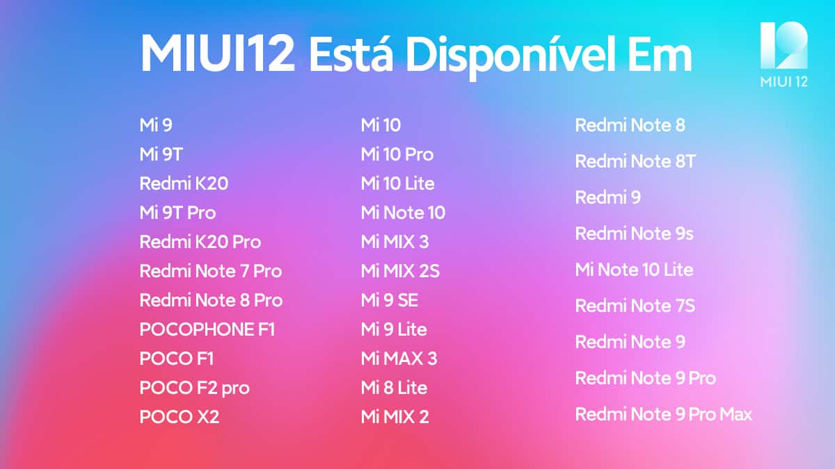 A imagem abaixo revela todos os equipamentos com o MIUI 12. É sem dúvida uma lista que está bastante extensa.