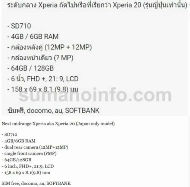 Sony Xperia 20: Especificações já chegaram à internet! Mais do mesmo?