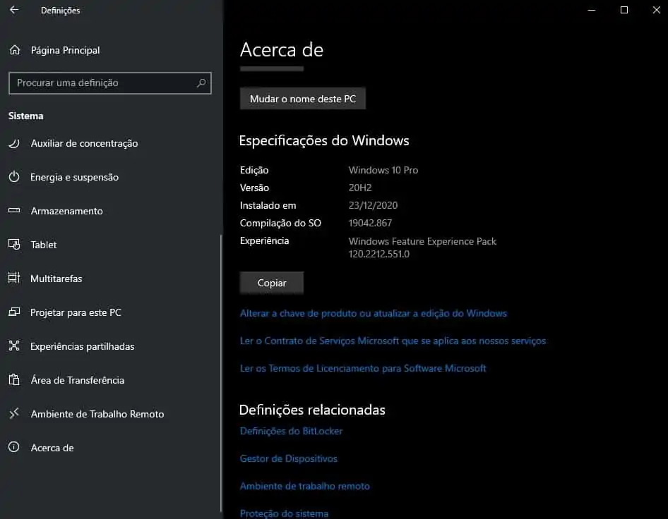 Se não sabe qual é a versão que deve descarregar é muito fácil descobrir. Basta ir a definições, sistema e acerca de.