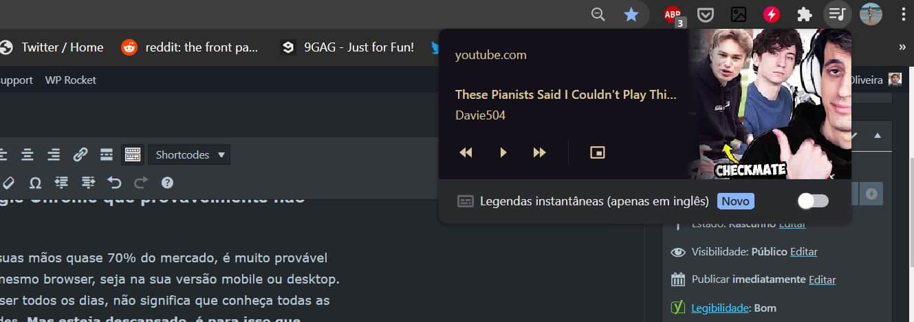 - Controlar todos os vídeos YouTube – Ouve música a partir do YouTube, ou anda constantemente a ver vídeos na plataforma? Pois bem, existe uma maneira de controlar todos os vídeos através de um ícone com uma nota musical, logo ao lado do seu perfil Google. (Estejam estes em pausa ou não)
