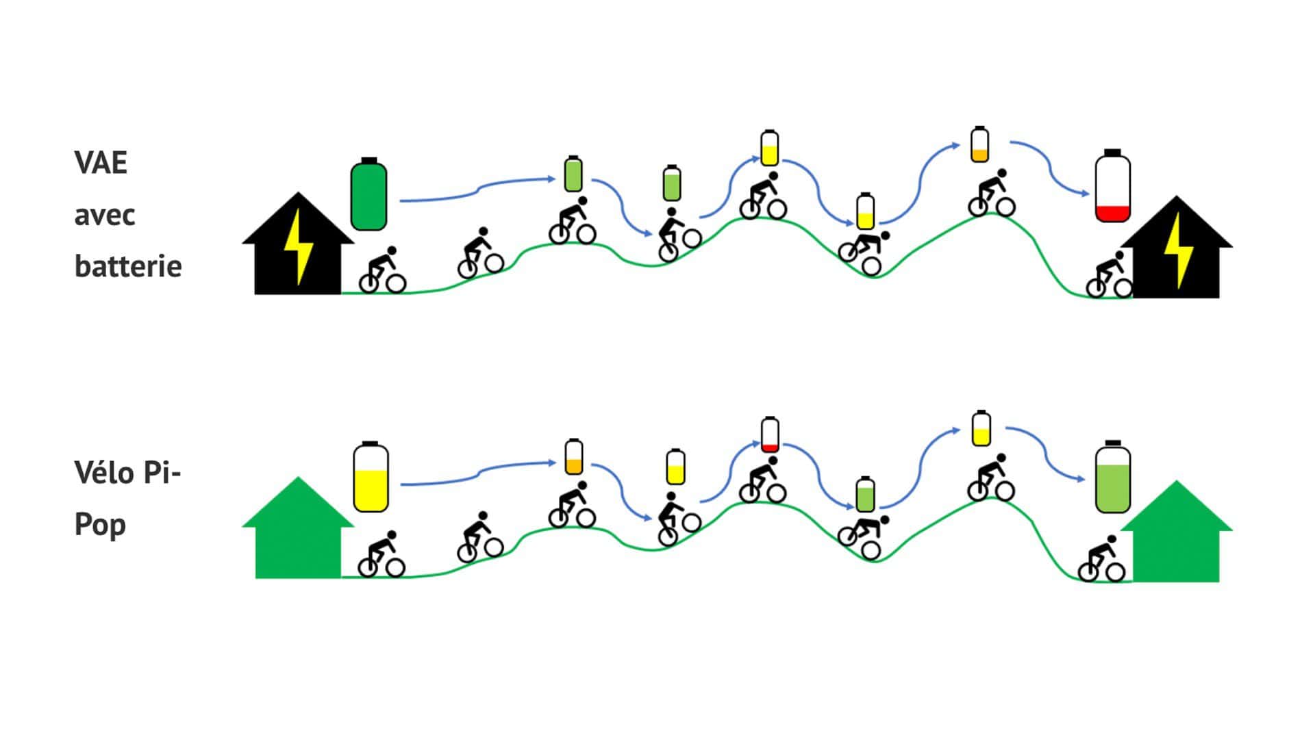 Em vez disso, a bicicleta usa um supercondensador, que por sua vez armazena energia à medida que o utilizador dá aos pedais, quando trava, ou quando é utilizada regeneração em descidas. Este supercondensador tem um ciclo de vida de 10~15 anos, o que por sua vez deverá significar que esta bicicleta até deverá durar mais alguns anos comparativamente a uma bicicleta elétrica mais tradicional.