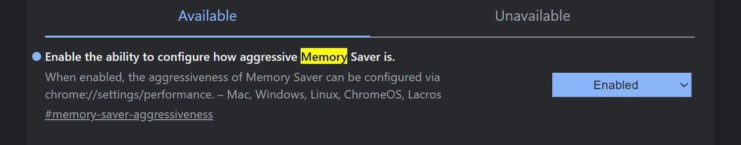 Os especialistas que andam atentos a tudo o que se passa no Chrome descobriram uma pequena adição de uma flag experimental que, uma vez ativada, permite ajustar a “agressividade” do economizador de memória. Como partilhado por @Leopeva64 no X (anteriormente conhecido como Twitter), a flag diz que isto pode ser configurado em Definições > Desempenho.