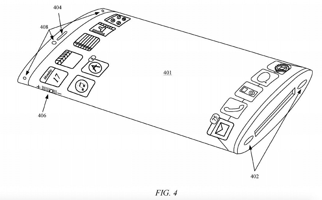Prova disso é a patente de ecrã ‘wraparound’ com o título ‘Electronic Device with Wrap Around Display’. Que foi publicada no mês passado, e registada no dia 3 de Julho. (No fundo, algo muito similar ao Mi Mix Alpha)