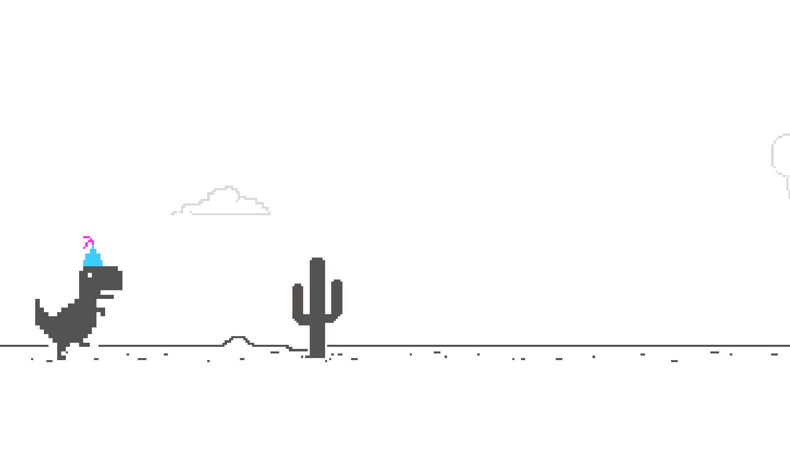 O dino que está no Chrome é um simples jogo na horizontal, onde salta sobre cactos e evita obstáculos. Os controlos são básicos. Pressione espaço para saltar (e para iniciar o jogo) e a seta para baixo para se abaixar. O objetivo é sobreviver durante o maior tempo possível ou até à sua Internet começar a funcionar.