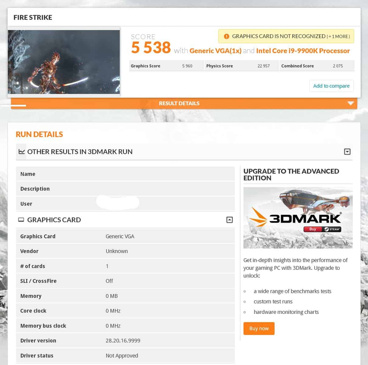 Afinal de contas, em termos de performance pura e dura, o GPU Xe DG1 conseguiu 5960 pontos, o que a mete ao mesmo nível da GTX 950, ou da velhinha topo de gama GTX 680. Assim, a GTX 1050 lançada em 2016 continua a ser uma placa gráfica mais competente, visto conseguir chegar aos ~6700 pontos no mesmo teste. Podemos dizer algo similar em relação à velhota RX 560 da AMD Radeon, capaz de alcançar os ~6300 pontos.