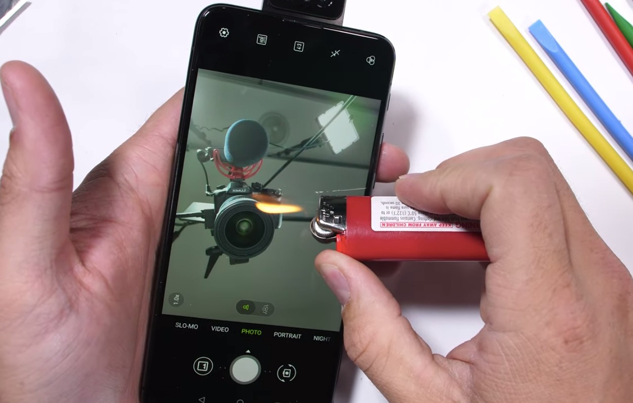 No entanto, todos os olhos estavam colocados na câmara rotativa. Dito isto, este canal tentou parar a câmara rotativa, danificar o funcionamento e até bateram com ela na mesa algumas vezes. Nada disto afetou a câmara do smartphone.