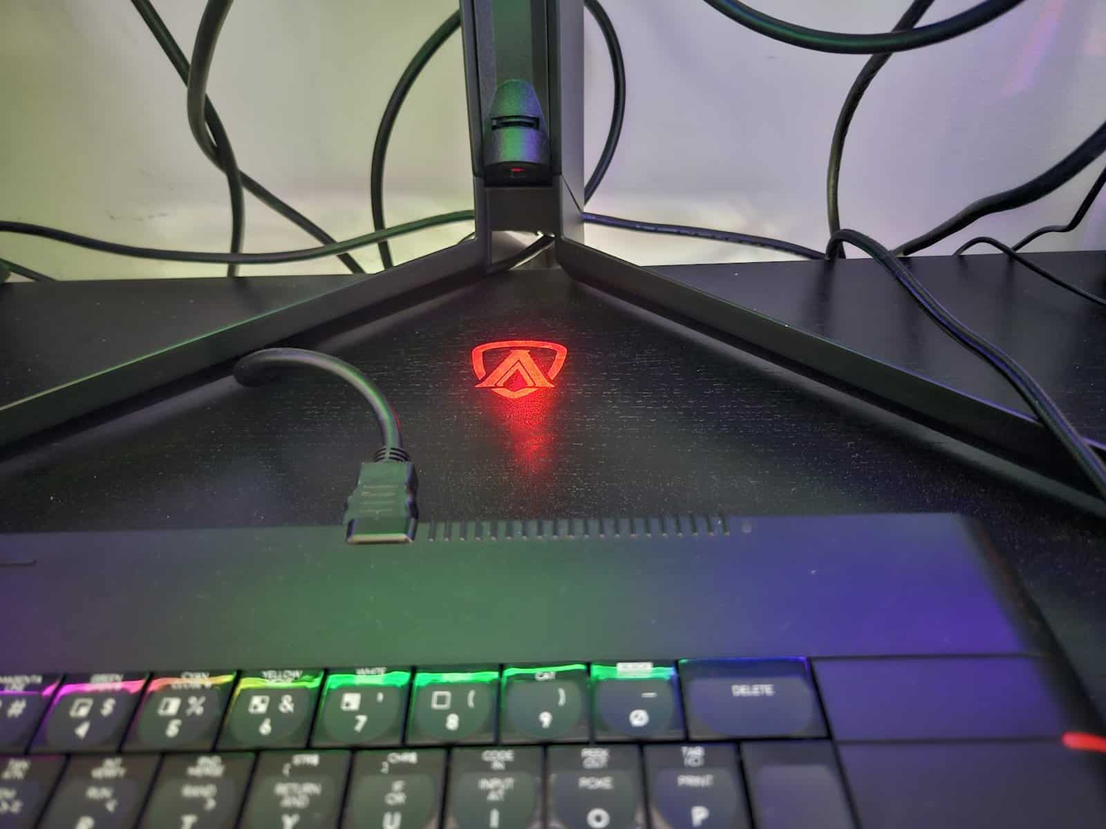 Ao ligar o monitor e para quem gosta destes pormenores ao nível do design tem uma surpresa. Na prática um logótipo incorporado que pode brilhar na sua secretária.