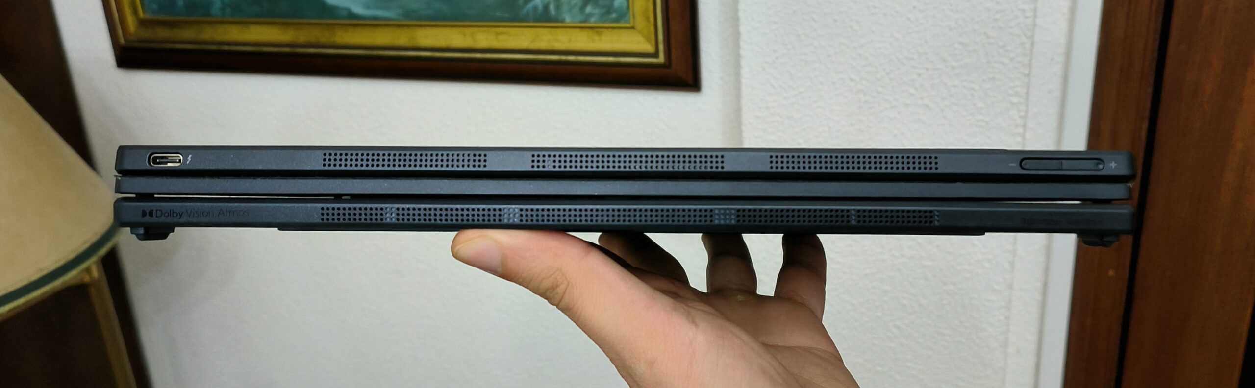 Felizmente, a dobra nem se nota muito quando abrimos o portátil ao máximo, porém, isto também se deve ao facto de a ASUS não querer exagerar no ângulo de dobra do ecrã OLED, daí a grossura por vezes exagerada para aquilo que é um portátil em 2023.
