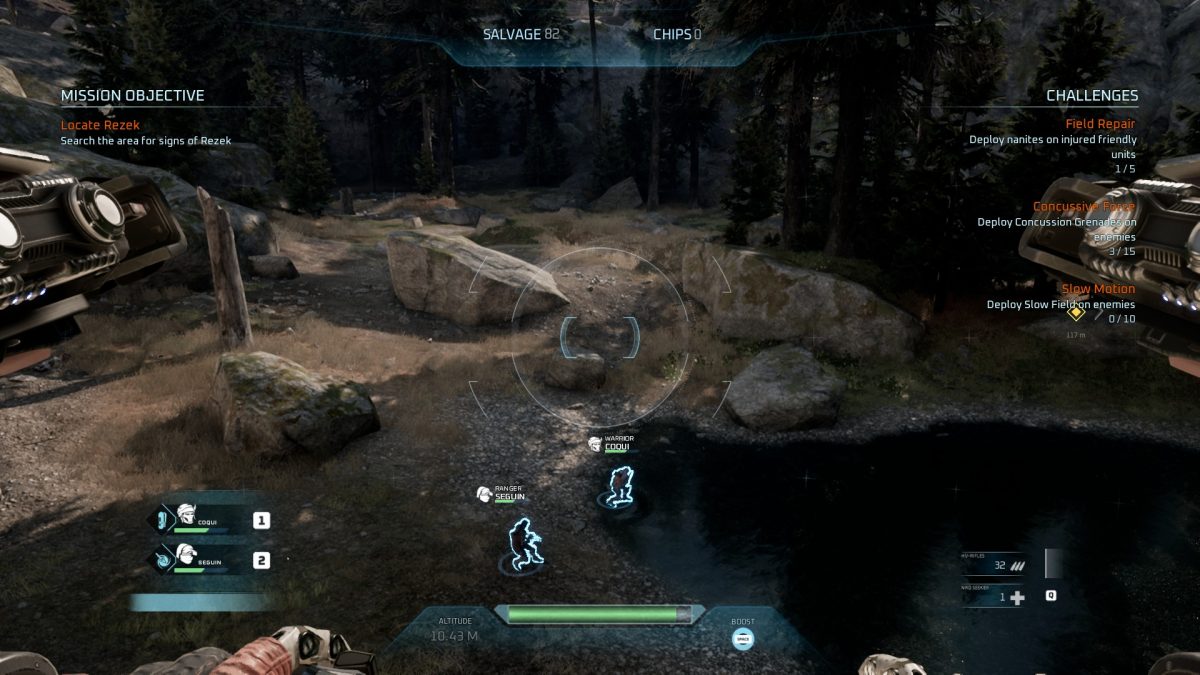 Caso não saiba o que é isto, esta prática consiste na transplantação do cérebro de um indivíduo para um corpo robótico. Dito isto, jogamos na pele de… bem, no aço do piloto Romer Shoal, que ao comando de um Gravcycle se junta a uma equipa de outros Integrados rebeldes durante uma campanha que dura sensivelmente 12~15 horas.