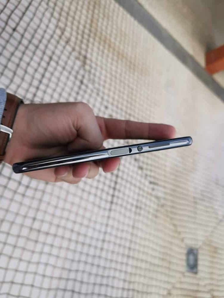 Além disso, em vez da impressão digital se situar na frente do smartphone, temos uma posição muito pouco usual, mas bastante interessante, na lateral! Logo abaixo dos botões de Volume e ‘Power’.