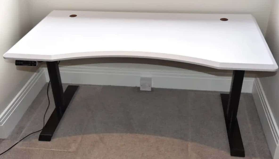 O modelo que escolhi para a review, foi um dos mais populares, e por isso, que parecem fazer mais sentido. De forma mais concreta, escolhi a Flexispot E8 com frame preta, e tampo curvo branco (140 * 70 cm).