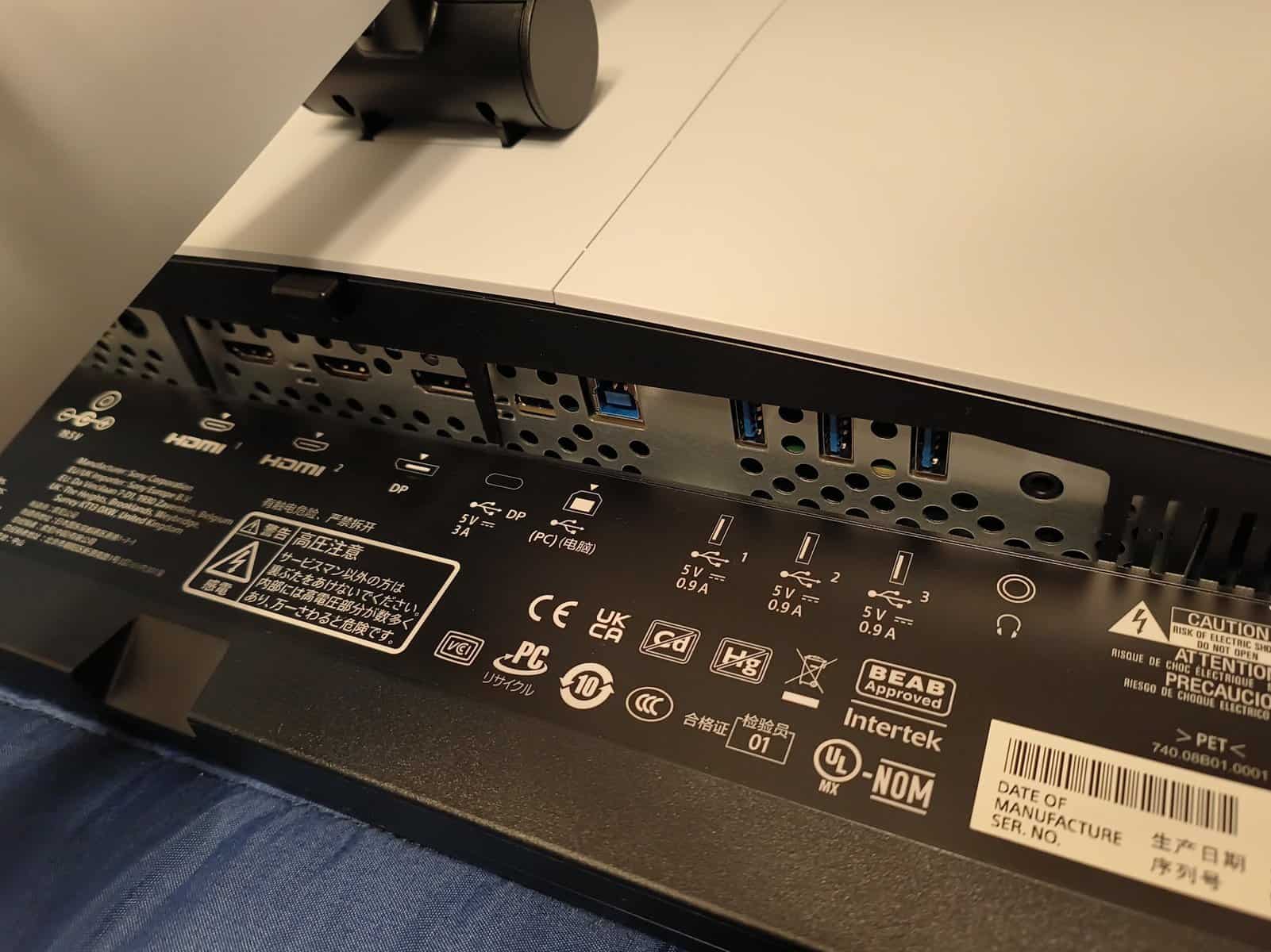 Aqui não temos falta de entradas e entradinhas. Temos HDMI 2.1, temos DisplayPort 1.4, temos USB-C com DP, temos USB-A, e até 3.5mm.