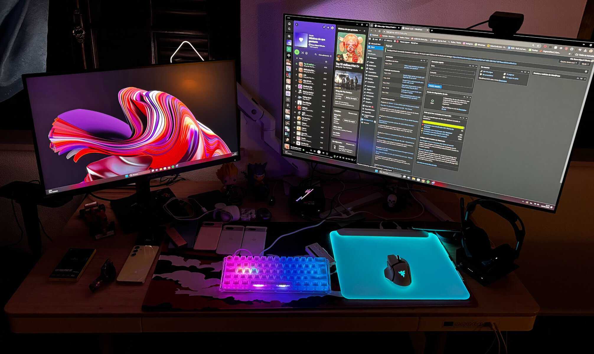 No meu caso, tenho o mini-PC ligado a dois monitores, um 4K a 120Hz, e outro QHD a 144Hz. (Como pode ver em baixo)