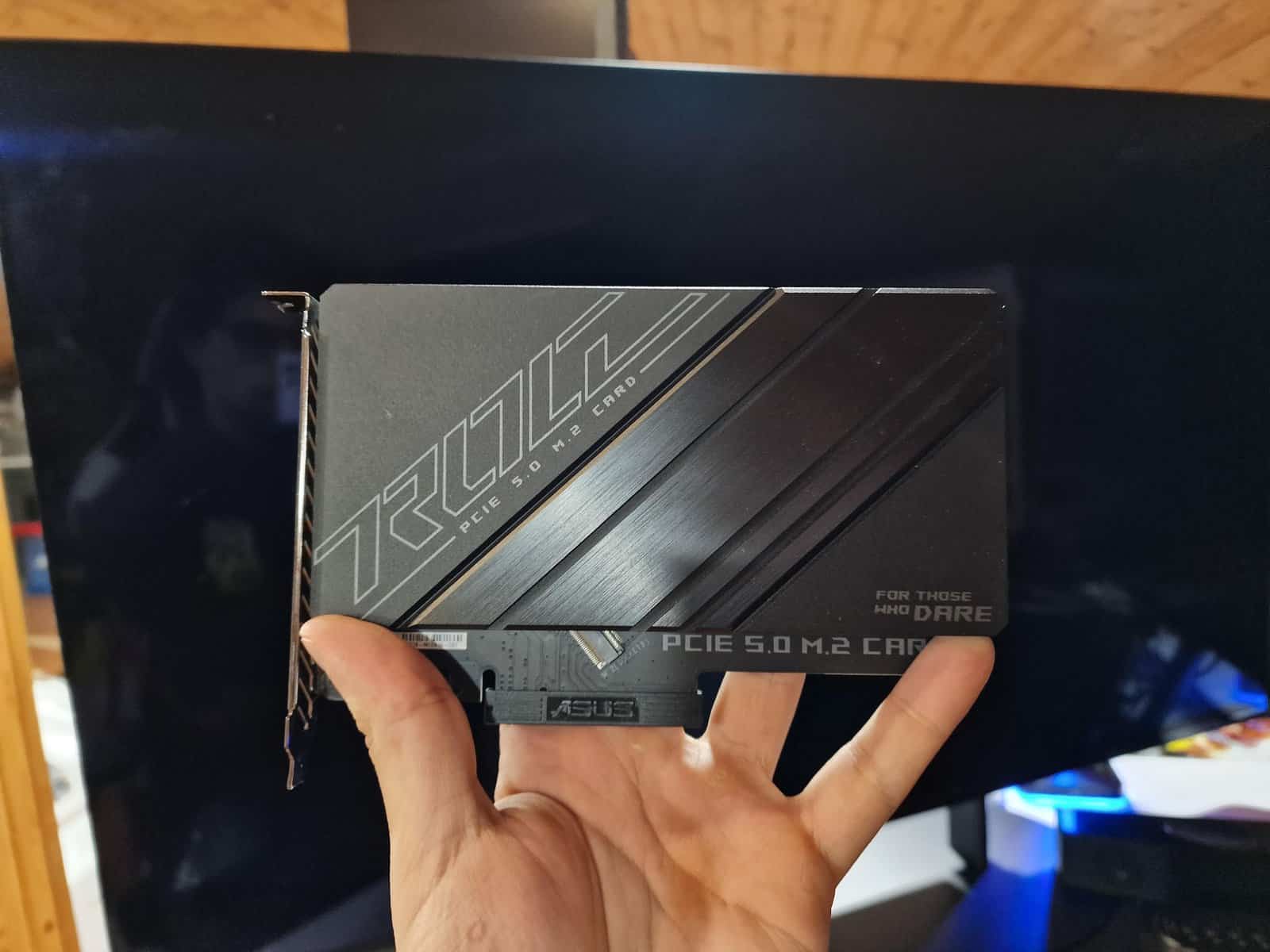 Antes de mais nada, quando se compra uma motherboard ASUS de gama alta, não encontramos apenas a board na caixa, temos mais algumas coisas para encontrar, todas elas interessantes. Como é o caso de autocolantes ROG, um cartão de agradecimento, antena Wi-Fi, cabos SATA, cabos de extensão ARGB e RGB, Q-Connector, e o melhor de tudo, uma placa PCIe 5.0 M.2 para meter muitos e bons SSDs.