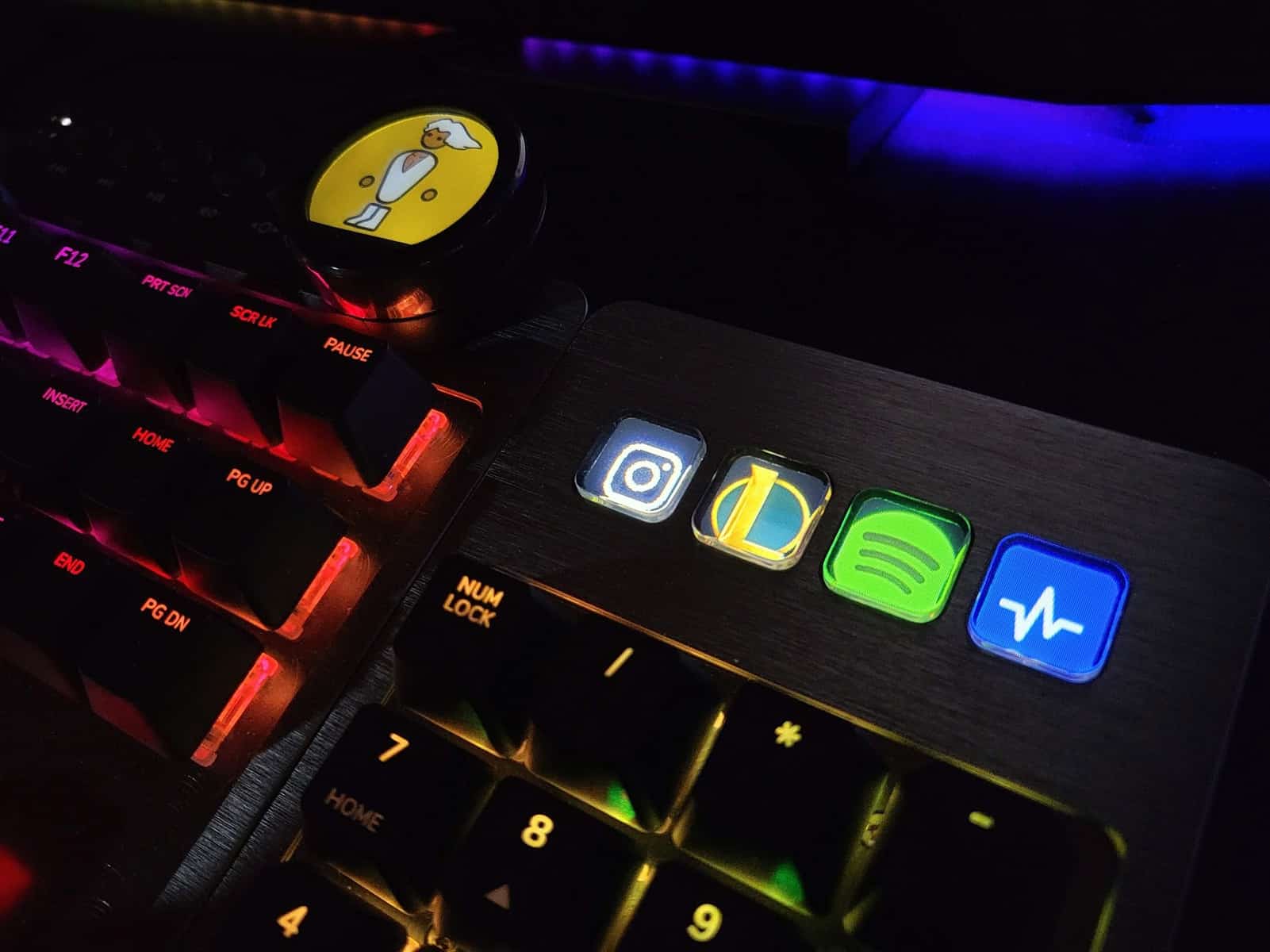 Além disto, temos ainda 4 outros pequenos ecrãs no teclado numérico, que podemos personalizar como bem entendermos. No meu caso, defini um botão para abrir o Instagram, outro para o League of Legends, e outro para o Spotify.