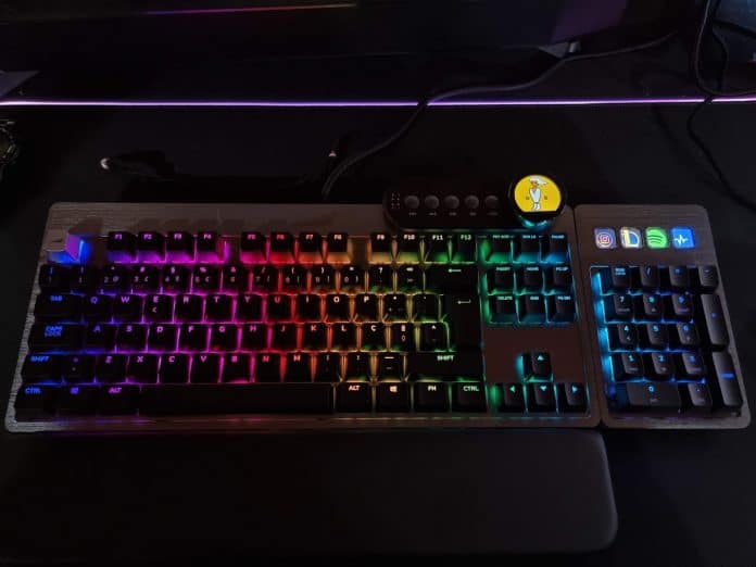 Como fator diferenciador além da componente modular, temos ainda um ecrã IPS LCD na Doca de Multimédia, que por sua vez, nos permite controlar várias definições do teclado e do PC. Assim, pode ter informações relativas à performance da sua máquina, mudar o volume, ver as horas, criar um temporizador, mudar o brilho do teclado, etc… Segundo a Everest, num futuro muito próximo, até vai ser possível criar apps para este pequeno ecrã e roda!