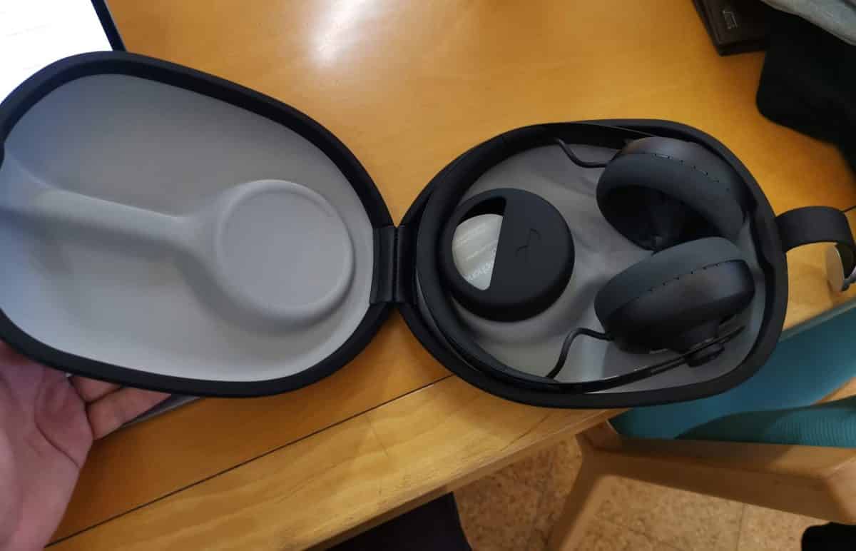 Aliás, temos um ‘Modo Social’, que utiliza os microfones, para deixar entrar o som ambiente. Extremamente útil, se alguém está a falar consigo, e simplesmente não quer tirar o aparelho da cabeça, ou quer continuar a ouvir a música ou ver o filme. Um modo que pode ser ativado, com um simples toque nos sensores táteis laterais. (Que são configurados na aplicação móvel)