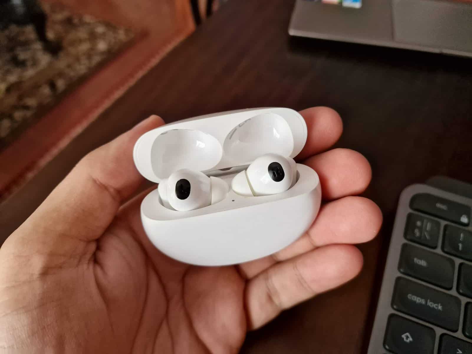 Pois bem, temos aqui um par de earbuds desenvolvidos com a ajuda da Dinamarquesa Dynaudio, num pacote com hardware e software para dar e vender. Afinal, temos ANC de qualidade (45dB), temos suporte a emparelhamento duplo, LHDC, certificação IP54, carregamento sem fios, e uma autonomia incrível de mais de 40 horas com o ANC desligado.