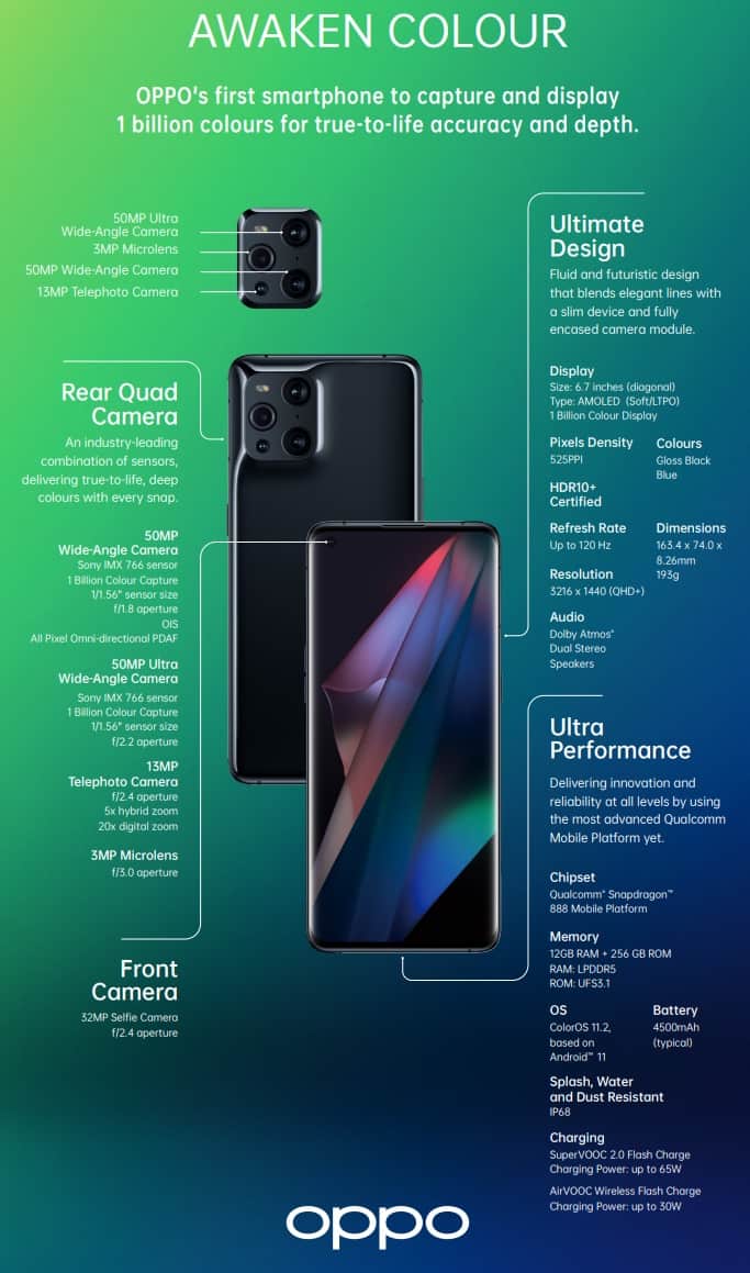 Aliás, segundo alguns leaks antes do lançamento, este Oppo Find X3 Pro conta com um painel AMOLED E4 da Samsung QHD+ AMOLED 10-bit color, ou seja, a última geração de ecrãs OLED LTPO, sendo assim uma tecnologia superior ao que a própria gigante Sul-Coreana implementou no recente Galaxy S21 Ultra.