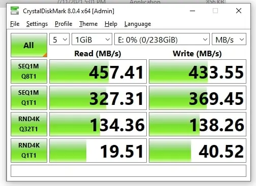 Quanto à nossa unidade em teste, temos a versão de entrada de gama, ou seja a de 256GB. Que por sua vez, é perfeitamente capaz de atingir os 427 MB/s de velocidade de leitura e 433 MB/s de velocidade de escrita. Ou seja, para transferência de ficheiros de grandes dimensões, ou trabalho em ficheiros multimédia a partir do próprio disco, é uma alternativa excelente.