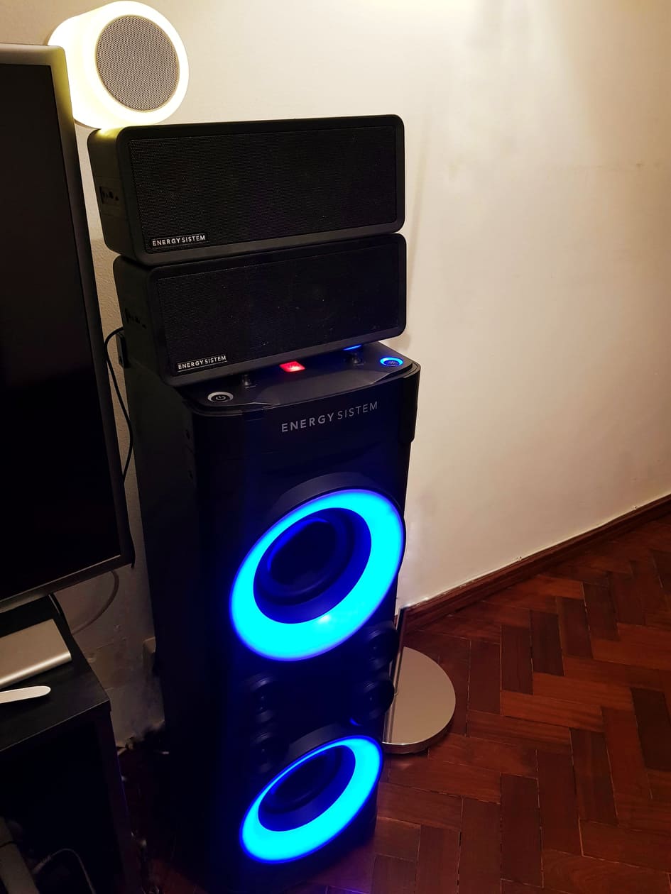 Confirmado! E até funciona melhor daquilo que estava à espera! Isto porque, experimentei com quatro colunas da Energy Sistem. A enorme torre Party 6, duas BOXs 9 e a uma outra coluna mais pequena. E na verdade funcionaram sem qualquer problema.