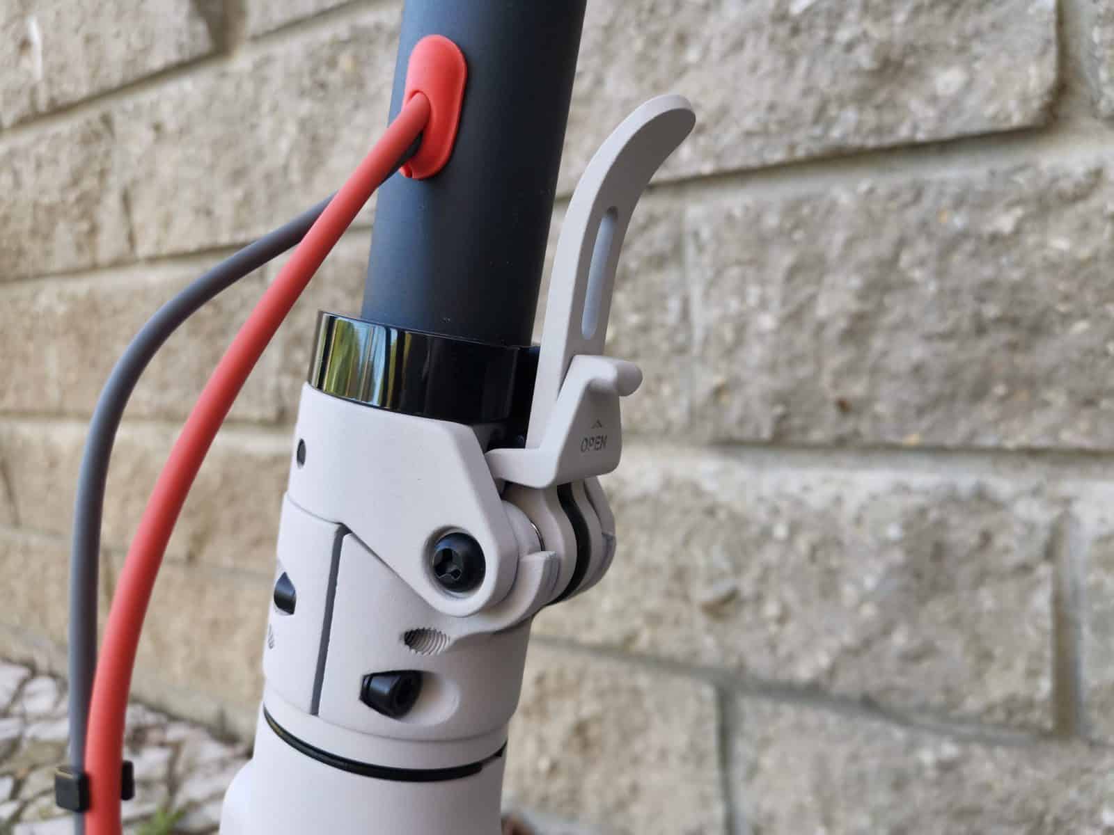 Quanto a arrumações, que também é algo muito importante neste campo da mobilidade elétrica, a verdade é que no fim do dia, pude arruma-la facilmente dentro do meu carro. Aliás, a sua alavanca para dobrar e prender a trotinete é super confiável e prática.