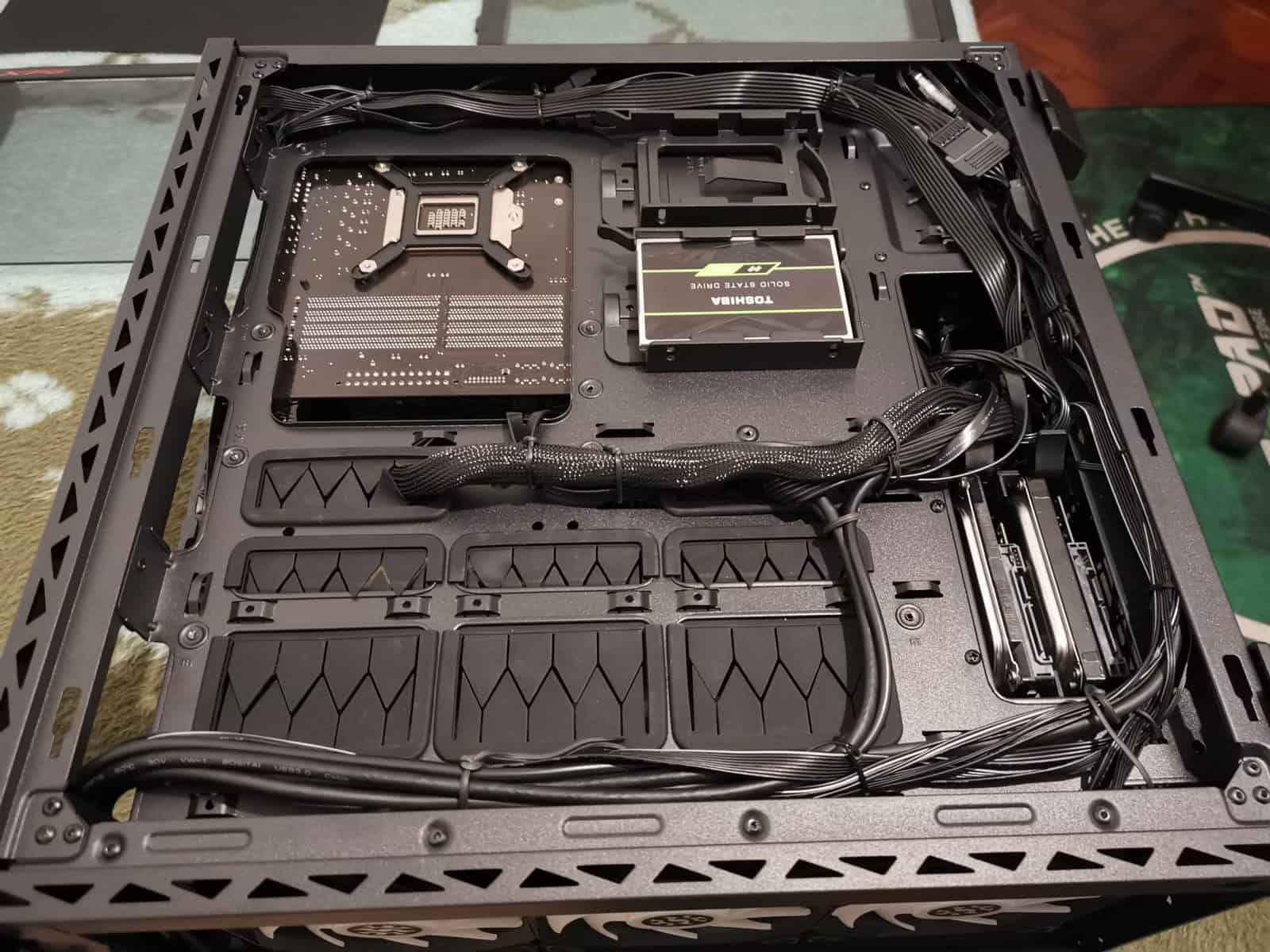 Ora bem, tal como disse anteriormente, esta caixa facilita imenso a missão que é construir um PC. Temos muito espaço, muitas entradas nos sítios corretos para os fios, e por isso, alinhar os cabos é uma tarefa feita sem problemas.