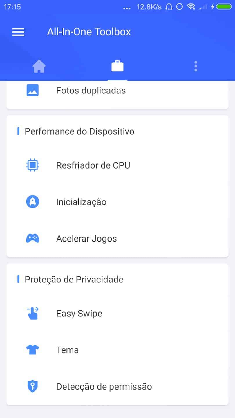 Um toque é tudo o que precisa para começar uma limpeza do smartphone. Entretanto pode ver as suas estatísticas no topo do ecrã. Mais especificamente espaço livre e RAM.