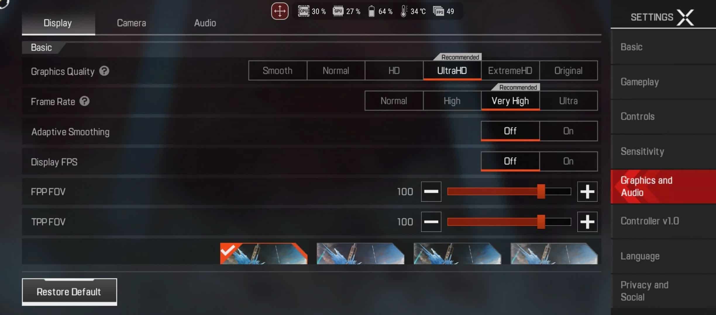 Mas e a jogabilidade? Apex Legends não é propriamente o título mais simples de controlar. De facto, é preciso encontrar o melhor equilíbrio entre precisão e a utilização adequada de armas e habilidades. Mas isto não é fácil. Até porque o espaçamento entre botões é péssimo. Pior ainda, o jogo mostra que suporta controladores físicos nas definições, e no entanto praticamente nenhum funciona. Inclusive aqueles mesmo para Android. Fala-se de que os comandos para a Xbox e PlayStation são suportados mas o feedback por parte dos utilizadores ainda é pouco.