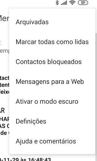É simples. Quando abre a aplicação de mensagens chega à janela principal onde estão todas as SMS e conversas que recebeu. Ora é só carregar nos três pontos que estão no canto superior direito e posteriormente escolher a opção definições.