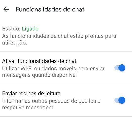 Na nova janela carregue na opção Funcionalidades de Chat.