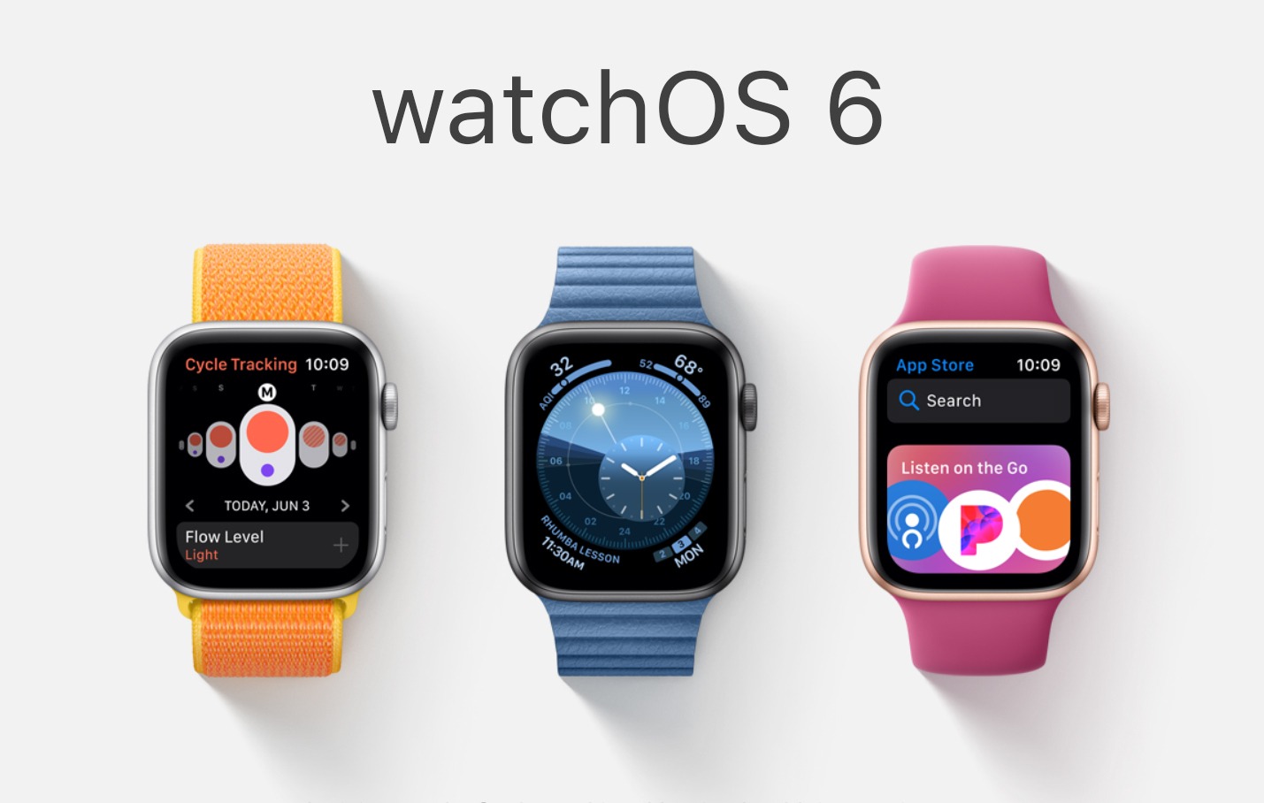 O WatchOS 6 também vem com mostradores de relógio dinâmicos, incluindo Meridian, Modular Compact e Solar Dial, que podem ser facilmente personalizados para um acesso mais rápido.