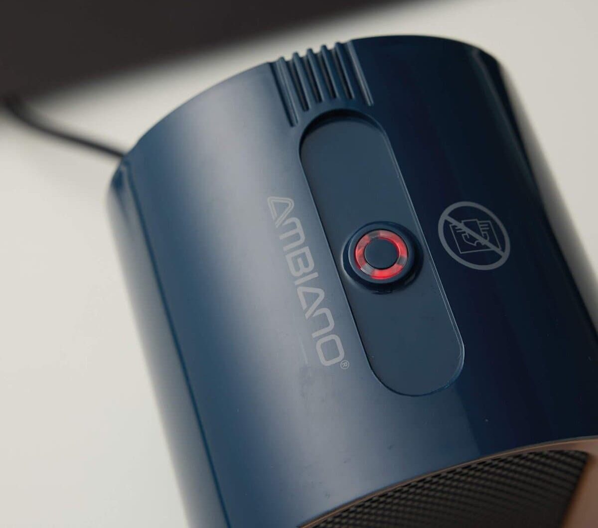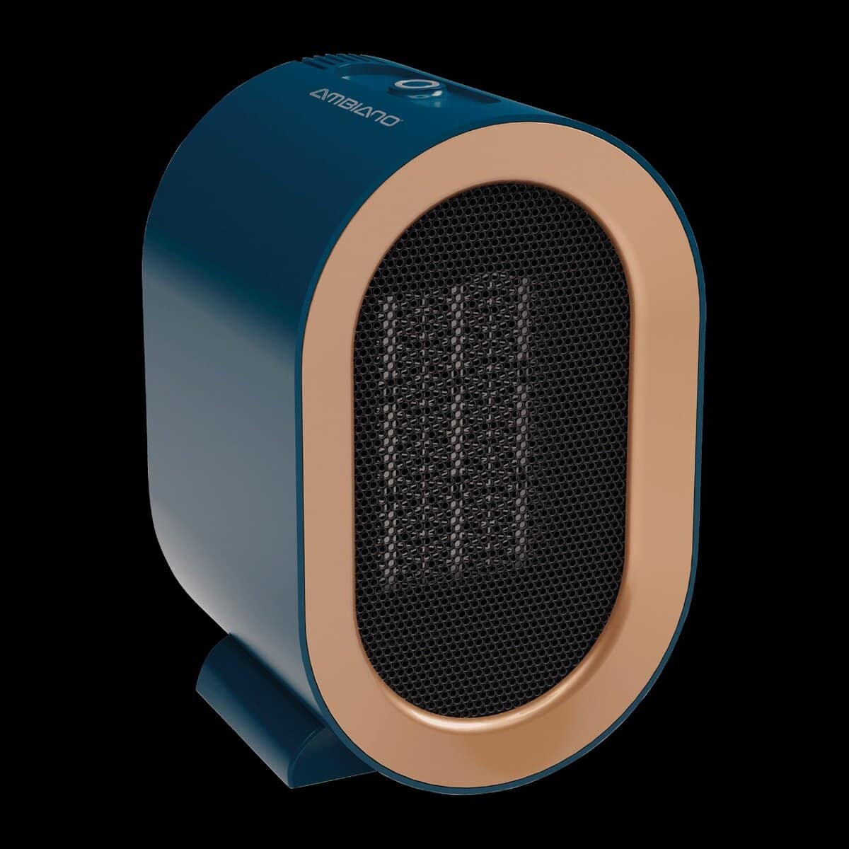 Vamos ser honestos: a primeira coisa que salta à vista é o aspeto. Com um acabamento num tom azul petróleo (ou teal) e um aro frontal em cor cobre/ouro rosa, este aquecedor tem uma pinta retro-moderna incrível.