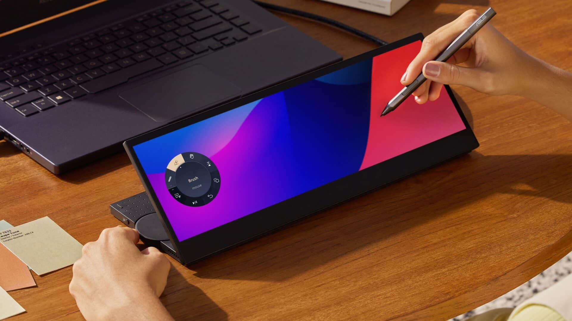 Na verdade, isto parece o monitor secundário da gama de portáteis ZenBook Duo, mas um pouquinho mais evoluído, visto que temos um painel calibrado para Delta E 2, com suporte a 100% da gama de cores sRGB, e ainda, acesso à ‘rodinha’ ASUS Dial.