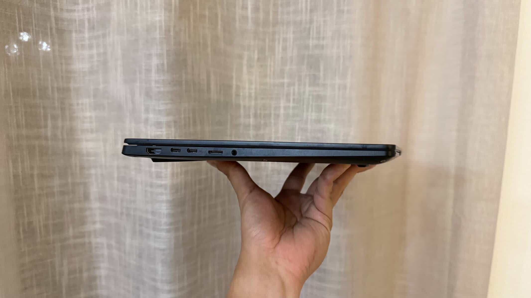 Ainda assim, tem algumas vantagens de construção interessantes. A dobradiça abre a 180 graus, e o sistema de arrefecimento com duas ventoinhas e duas saídas traseiras é claramente mais ambicioso do que aquilo que se costuma ver neste segmento.