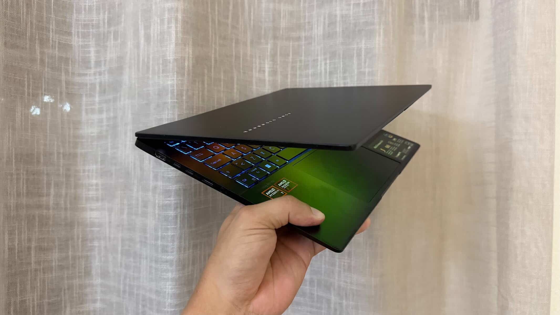 Tem falhas? Tem. A ergonomia podia ser melhor, as colunas são fraquinhas e o branding é um bocadinho chamativo. Mas naquilo que interessa mesmo, este portátil brilha.