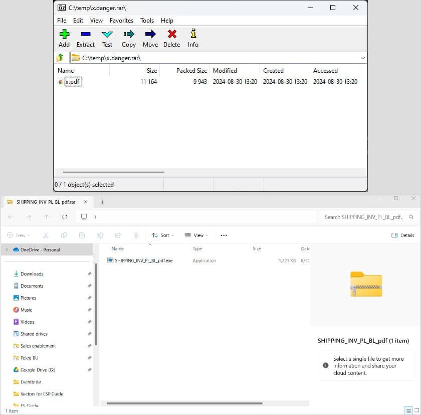 Ao experimentarem o ficheiro maliciosono 7Zip, os investigadores da Perception Point viram que apenas surgia um ficheiro PDF inofensivo. Abri-lo com o Windows Explorer, no entanto, revelou o executável malicioso.