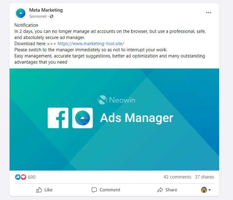 No relatório, a Meta afirma ter interrompido as operações de malware com uma rápida adaptação adversária. De acordo com um relatório do Group-IB, mais de 3.200 páginas e perfis do Facebook foram comprometidos para se fazerem passar por marcas tecnológicas, incluindo palavras-chave como AI, ChatGPT e Bard. Após dois meses de presença reduzida, os grupos de malware estão novamente a causar estragos no Facebook.