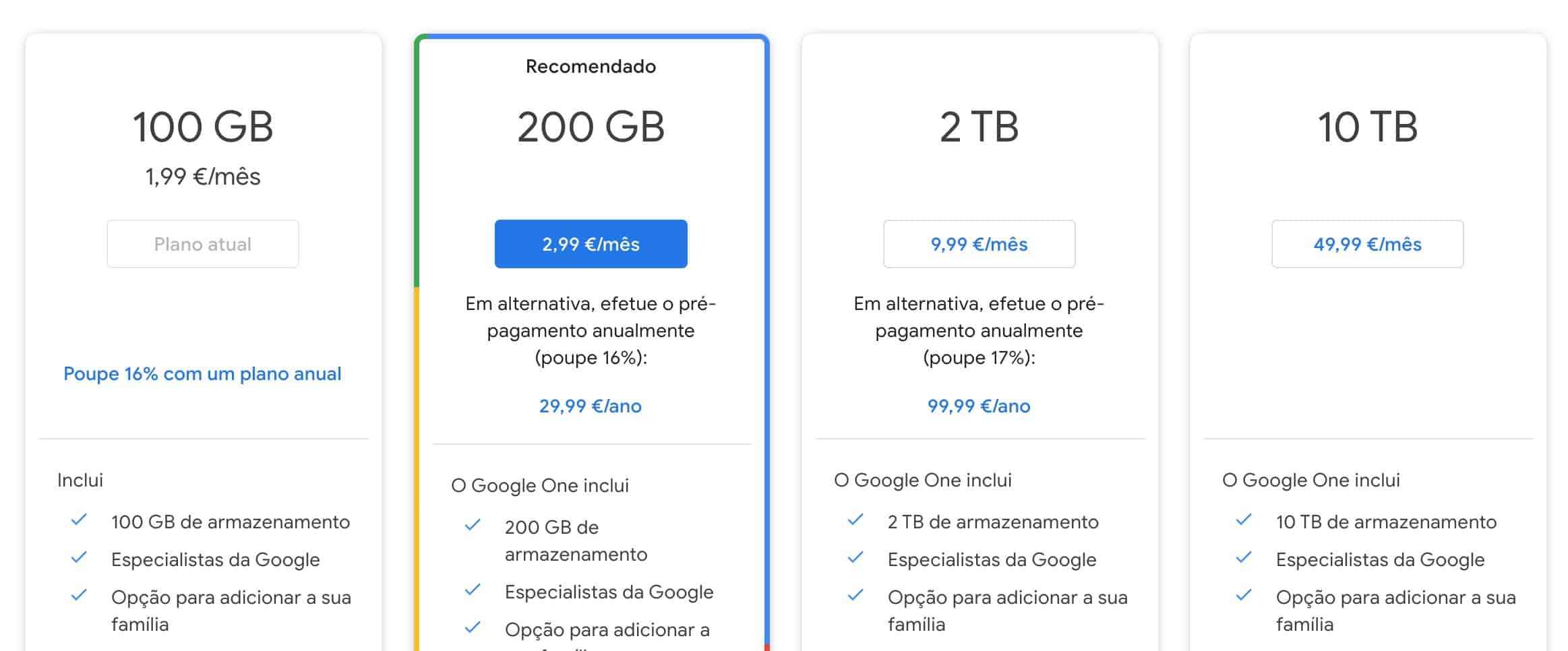 Os preços das subscrições valem realmente a pena. De facto, para o tamanho que nos dão, considero que têm um preço bastante aceitável. Assim, por 1.99 Euros temos direito a 100GB de mês. Por 2,99 Euros mês, 200GB. Se fizer pagamento anual fica ainda mais barato. 29.99 Euros por ano. Depois temos ainda a opção de 2TB por 9,99 Euros e por fim a de 10TB por 49 Euros mês.