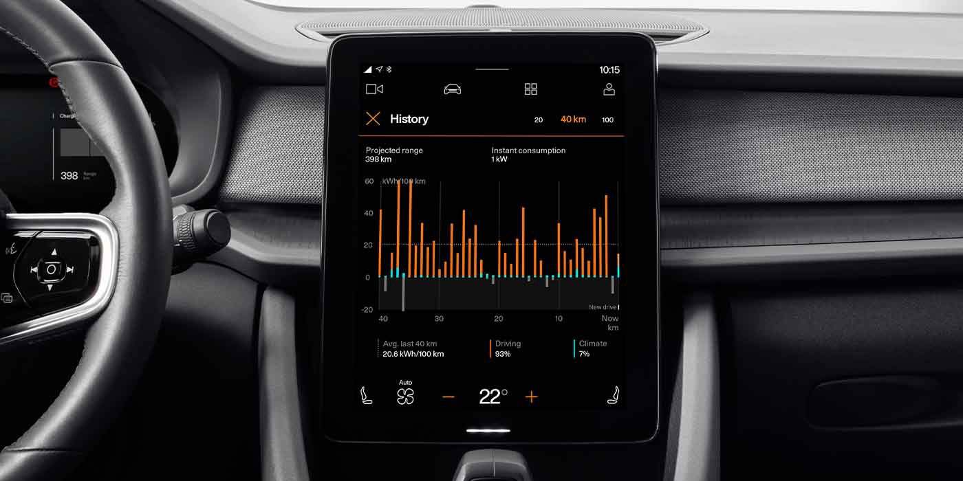 A primeira funcionalidade adicional da atualização do Polestar 2 a que Ingenlath se refere é uma atualização da aplicação Range Assistant que permite agora aos condutores verem detalhes extra acerca do consumo de energia em tempo real. Entretanto pode agora monitorizar os kms anteriores da sua viagem para ajustar o seu estilo de condução e melhorar a eficiência global da autonomia.