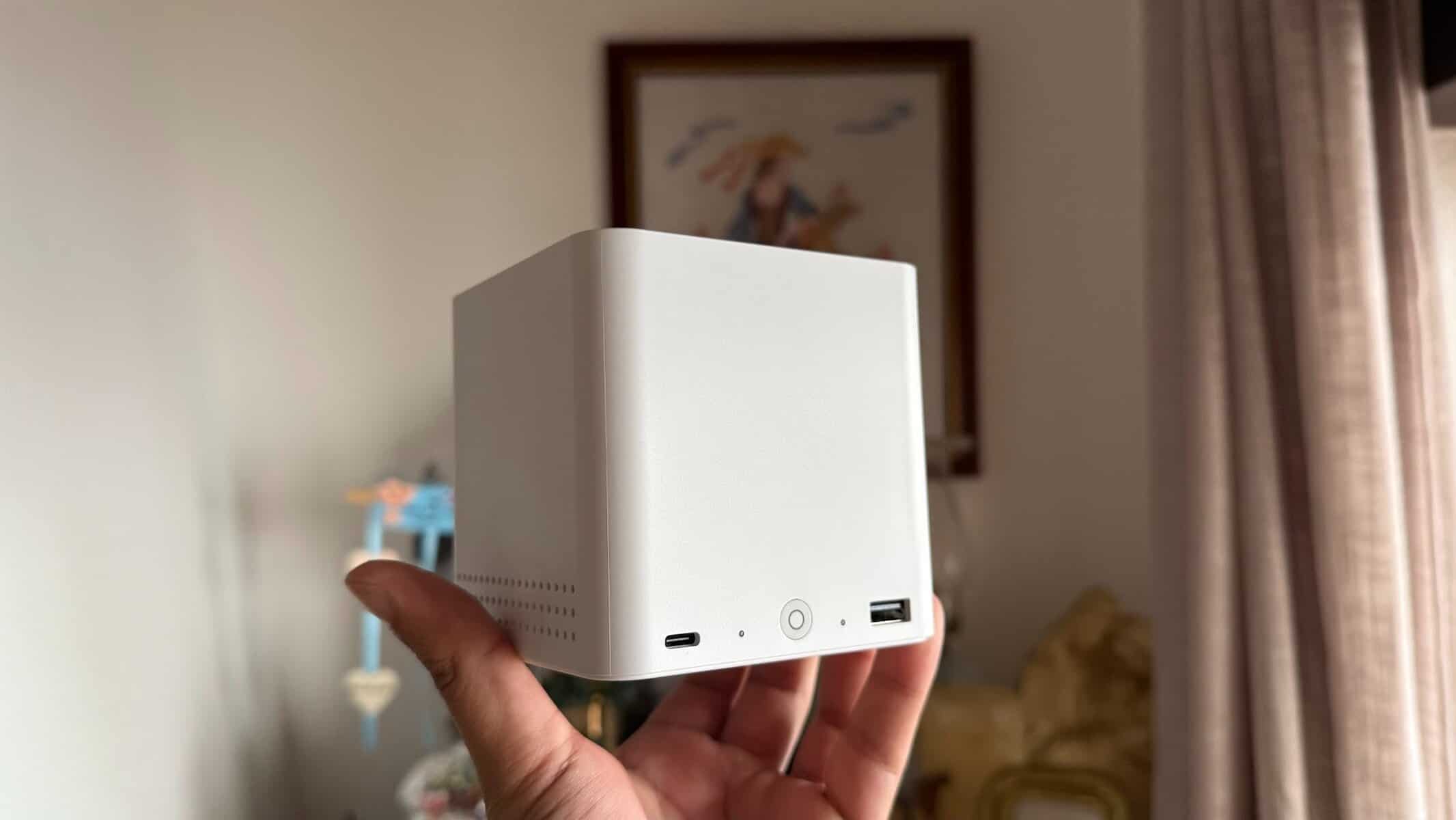 Isto porque, é um mini-PC com aspirações de NAS que ocupa menos espaço do que um router, mas suporta até seis SSDs NVMe, tem duas portas Ethernet de 2.5Gbps, refrigeração ativa mas praticamente inaudível, e ainda é incrivelmente eficiente.