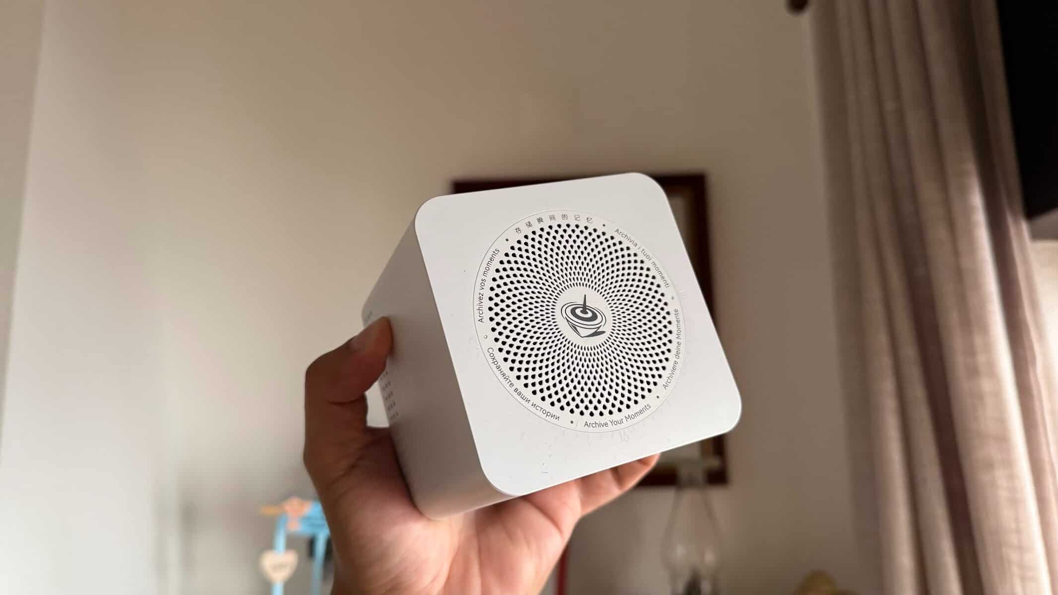 Este ME Mini tem apenas 99 mm de lado e ventilação em todas as direções. O modelo testado era branco, mas também existe em cinzento ou azul esverdeado.