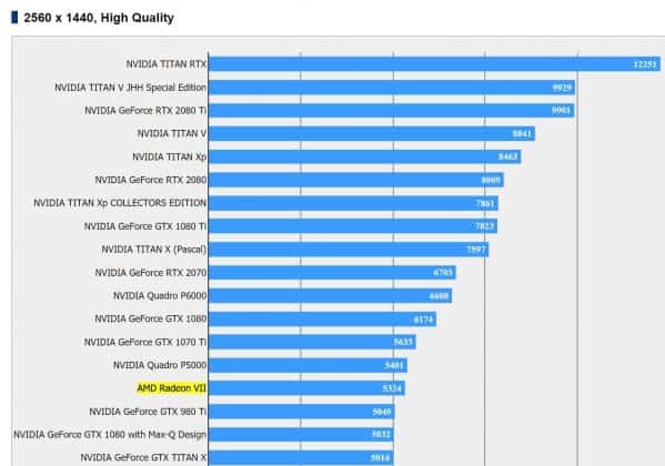 Assim, a Radeon VII parece ser mais rápida que a oferta da NVIDIA, em ambos os testes, como pode ver em baixo: