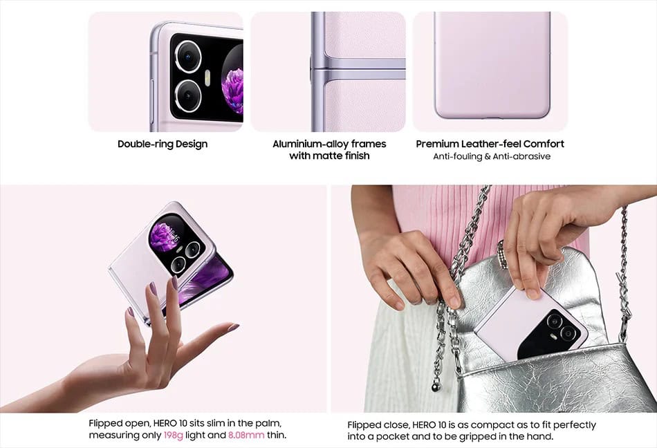 Este é um smartphone de gama de entrada, a tocar na gama média, ao ter como base um SoC Helio G99, combinado com 12GB de memória RAM LPDDR4X e 256GB de armazenamento UFS 2.2. Além de tudo isto, temos um ecrã principal OLED dobrável de 6.9” e resolução 2.5K, bem como um ecrã secundário também ele OLED, redondo, com o tamanho de 1.19”.