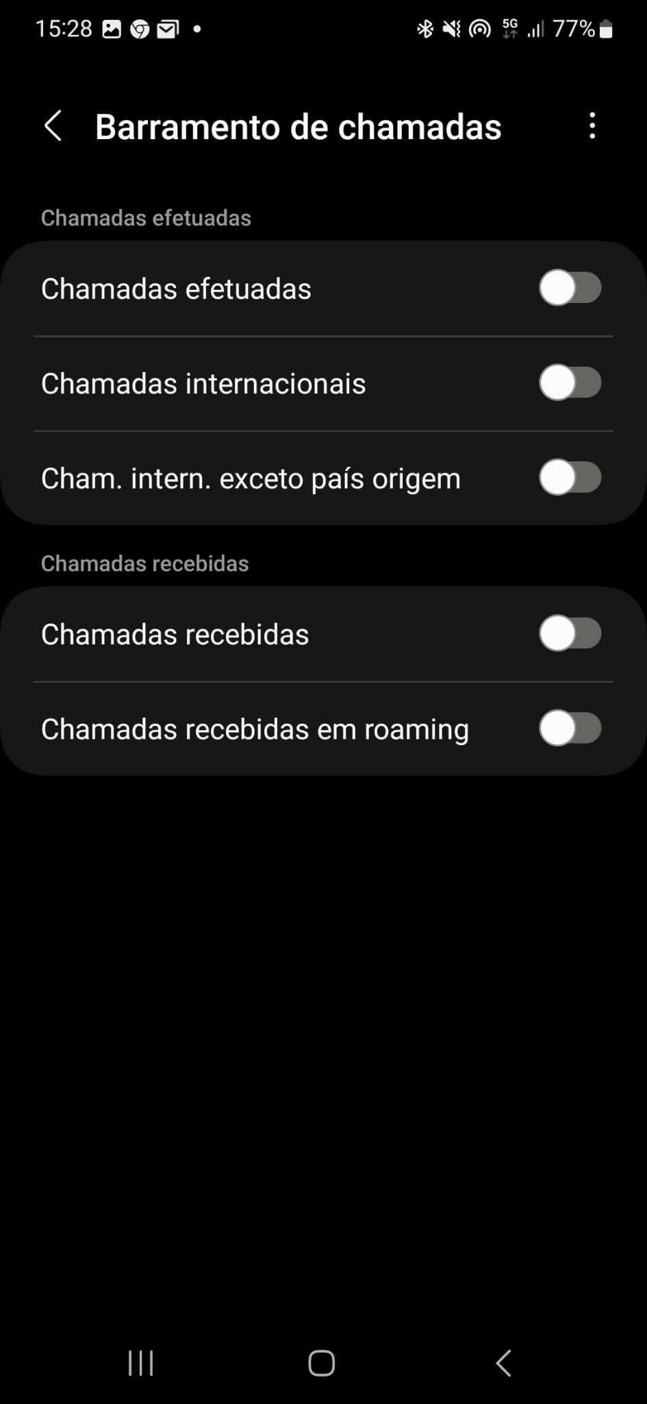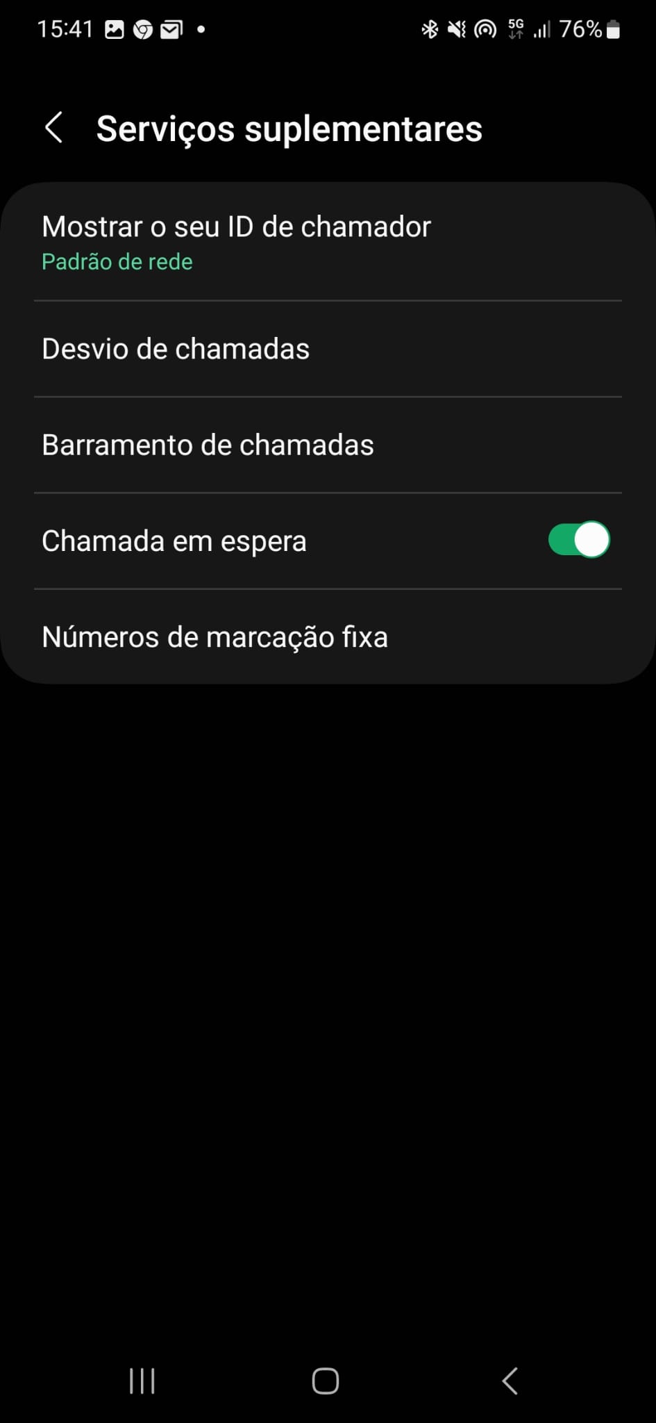 Para desativar o bloqueio de chamadas no seu Samsung Galaxy, toque no ícone dos três pontos na aplicação Telefone e vá a Definições > Serviços suplementares > Bloqueio de chamadas > Chamada de voz e, em seguida, desative cada definição.