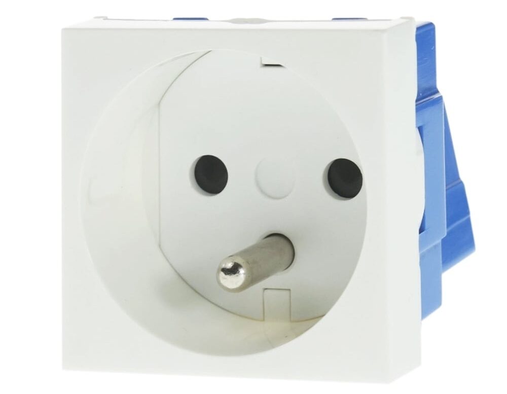 O Schuko não se limita aos buracos. É um sistema completo de fichas e tomadas que inclui dois contactos de terra laterais. Isso significa que, além de levar corrente elétrica, a ficha garante ligação à terra sempre que ligada a um aparelho, protegendo contra choques elétricos.