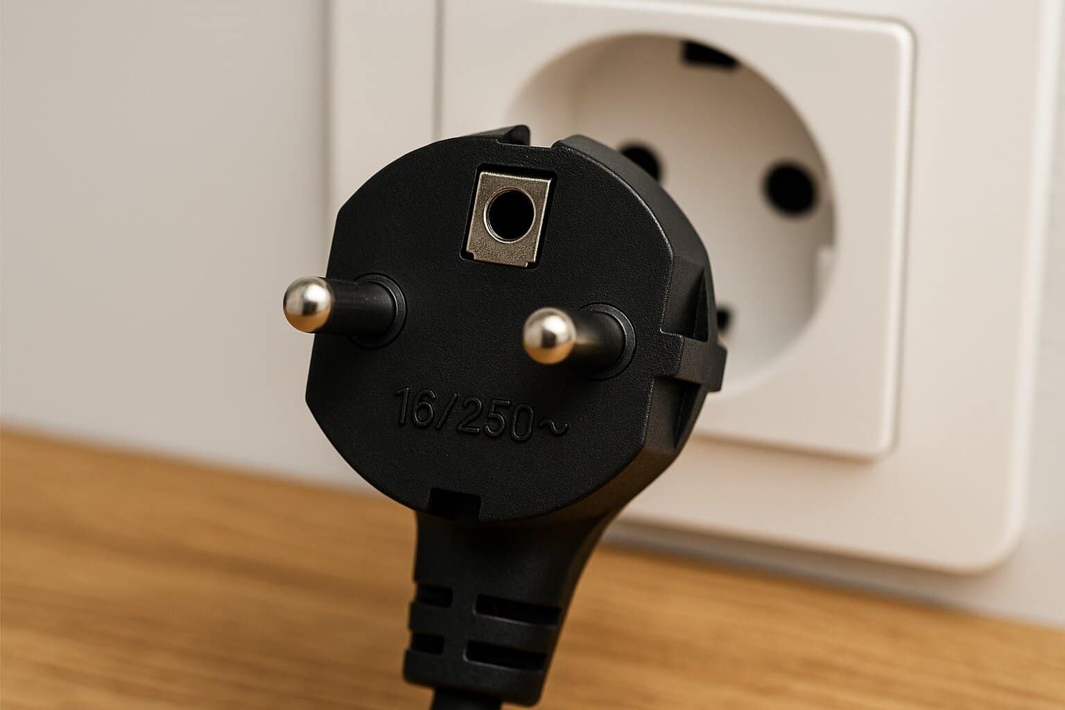 O Schuko não se limita aos buracos. É um sistema completo de fichas e tomadas que inclui dois contactos de terra laterais. Isso significa que, além de levar corrente elétrica, a ficha garante ligação à terra sempre que ligada a um aparelho, protegendo contra choques elétricos.