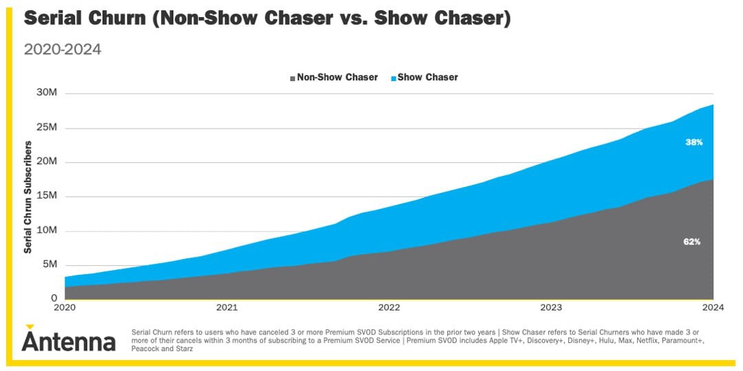 Como referimos acima este comportamento é cada vez mais comum. De facto, 38% dos seguidores de séries, conforme revelou a empresa de estudos de mercado Antenna, efetuaram três ou mais cancelamentos nos primeiros três meses de subscrição de um serviço de streaming. É uma grande proporção de utilizadores!