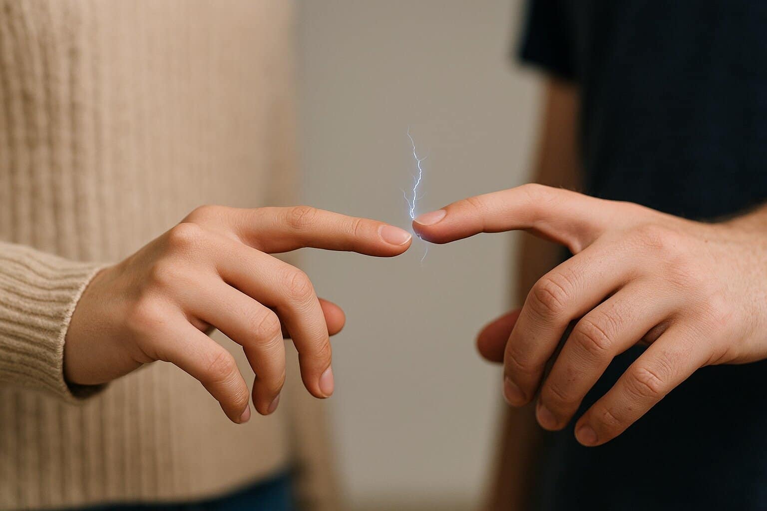 Estás a caminhar no supermercado, esticas a mão para dar uma moeda ou pegar num saco, e de repente: PZZZT! Um pequeno choque, rápido mas desconfortável. A outra pessoa também se assusta, olham-se os dois com cara de surpresa e soltam a frase clássica: “Ui, deu-me um choque!”. Parece magia, mas não é. É ciência e pode ser mais comum do que imaginas. Os choques elétricos quanto tocamos noutras pessoas acontecem sobretudo em ambientes secos, no inverno, ou em sítios com muito ar condicionado. Mas a pergunta é: porquê? Porque sentimos choques elétricos quando tocamos noutras pessoas?