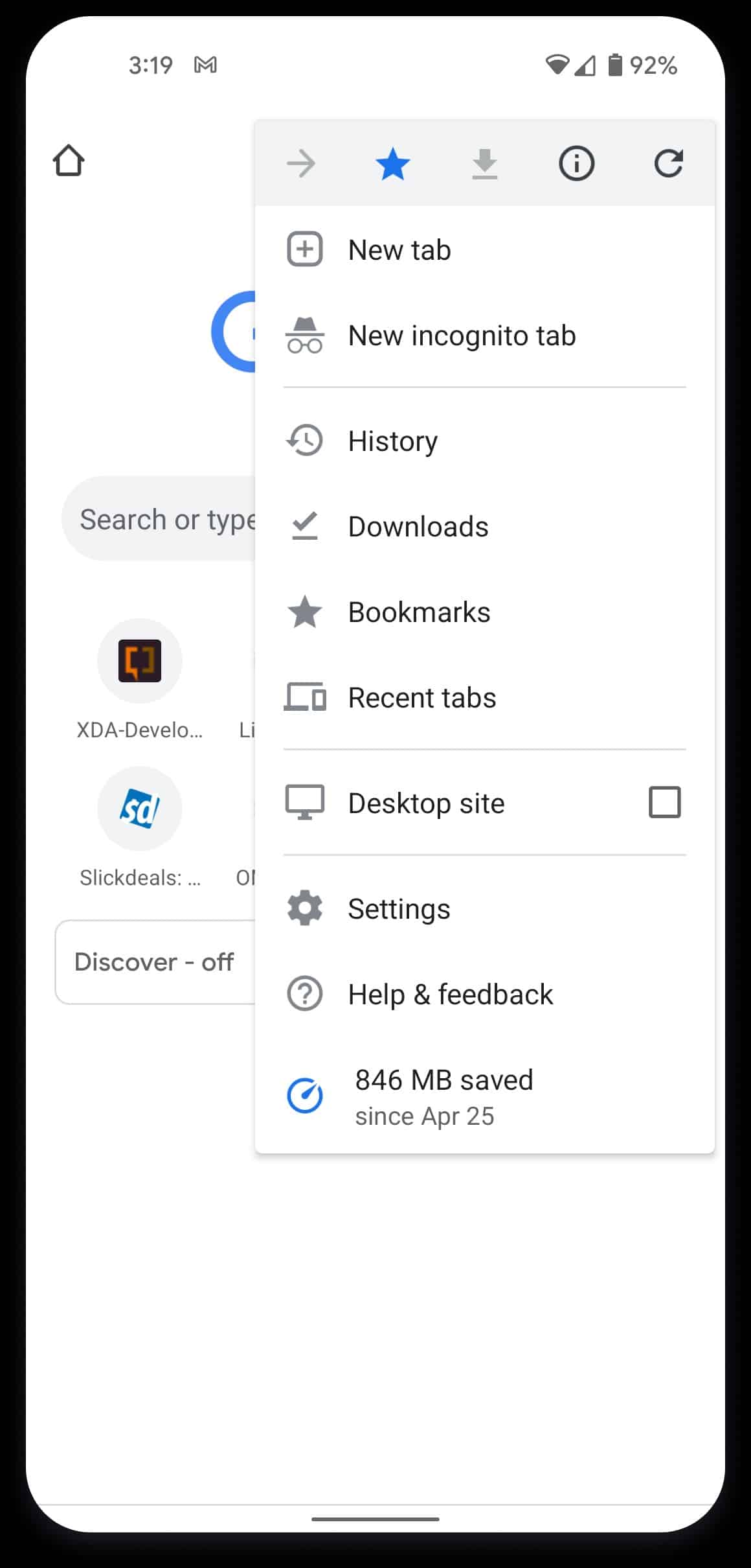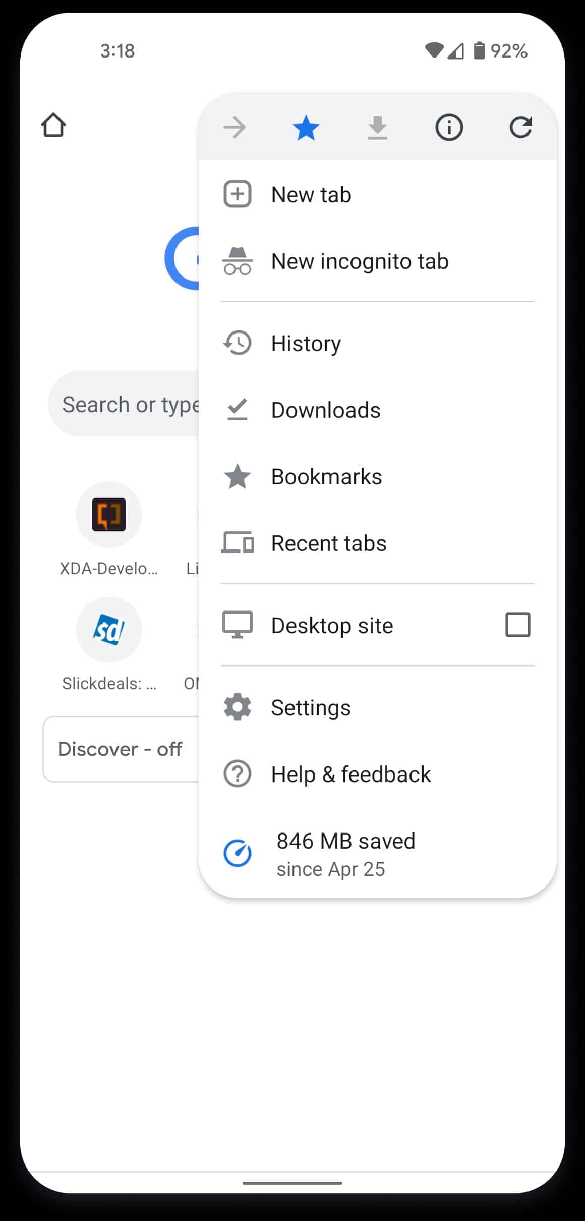 Assim que o Chrome for lançado, terá de o reiniciar uma segunda vez. Assim, feche-o a partir do ecrã Recentes e abra-o novamente a partir da gaveta das aplicações. O novo design aparecerá depois de premir o botão do menu no Chrome.